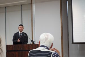 講演2では、当科助教の名嘉眞 健太先生が「皮膚がん ―怪しいできものは皮膚科医へ― できものの見方と受診のタイミング」というテーマで講演し、日常で気をつけるべき皮膚の変化や早期受診の重要性について紹介、解説されました。