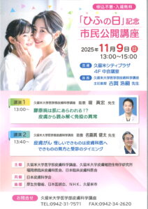 11月9日(日)、久留米シティプラザにて「ひふの日」記念市民公開講座を開催いたしました。